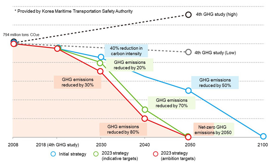 The International Maritime Organization (IMO) is a specialized UN agency that addresses legal, environmental, and safety matters related to ships operating on the high seas. In 2023, the IMO adopted the 2023 IMO GHG Strategy, significantly raising its target to achieving net-zero emissions by 2050 [1]. Various GHG-related regulations such as the Energy Efficiency Design Index (EEDI) and Carbon Intensity Indicator (CII) have already taken effect, and discussions are now underway for even stricter regulations. As a result, the future viability of fossil-fuel-based ships is uncertain, and the shipbuilding and maritime sectors are experiencing unprecedented disruption.