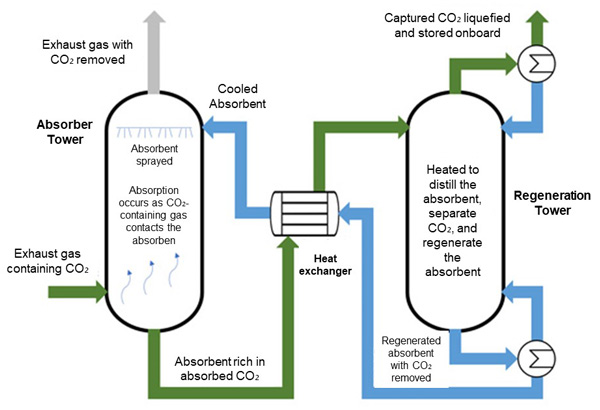 Given that the large-scale adoption of alternative marine fuels is unlikely in the near term, considerable attention has shifted toward Onboard Carbon Capture and Storage (OCCS)—an approach that adapts established Carbon Capture, Utilization, and Storage (CCUS) technologies for maritime applications. Among the various CCUS methods, chemical absorption-based post-combustion capture is currently considered as the most viable option for ships, as it can be integrated with minimal modification to existing propulsion systems.