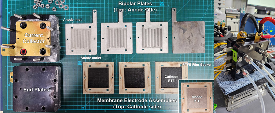 A water electrolysis cell using this operation method operated stably for over 1,000 hours under high current density of 1 A/㎠. Furthermore, the system demonstrated outstanding durability in a scaled-up configuration: a three-stack water electrolysis cell with a 25㎠ active area per cell also ran for several hundred hours. This result verifies the reliability of the technology not only at the lab scale, but also under realistic conditions involving extended operation and large-area systems.