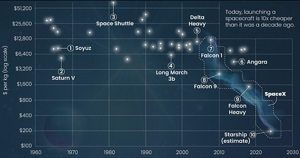 - 그림3. The Cost of Space Flight Before and After SpaceX, Visual Capitalist (https://www.visualcapitalist.com/the-cost-of-space-flight/)