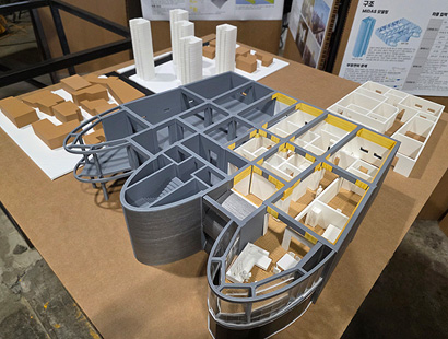 - 3) 실제 건물과 동일한 형태의 미니어처로, 실제 크기의 1/100, 1/50 등의 비율(scale)로 축소하여 제작된다.