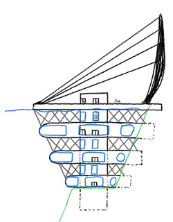 요약하자면, 먼저 특정 이슈에 관한 문제의식에서 건축물의 주제와 형태에 관한 아이디어를 얻습니다. 이후 상상한 건축물을 간단한 그림으로 나타내고, 디지털 상에서 세부 사항을 추가하며 이를 완성해 갑니다.