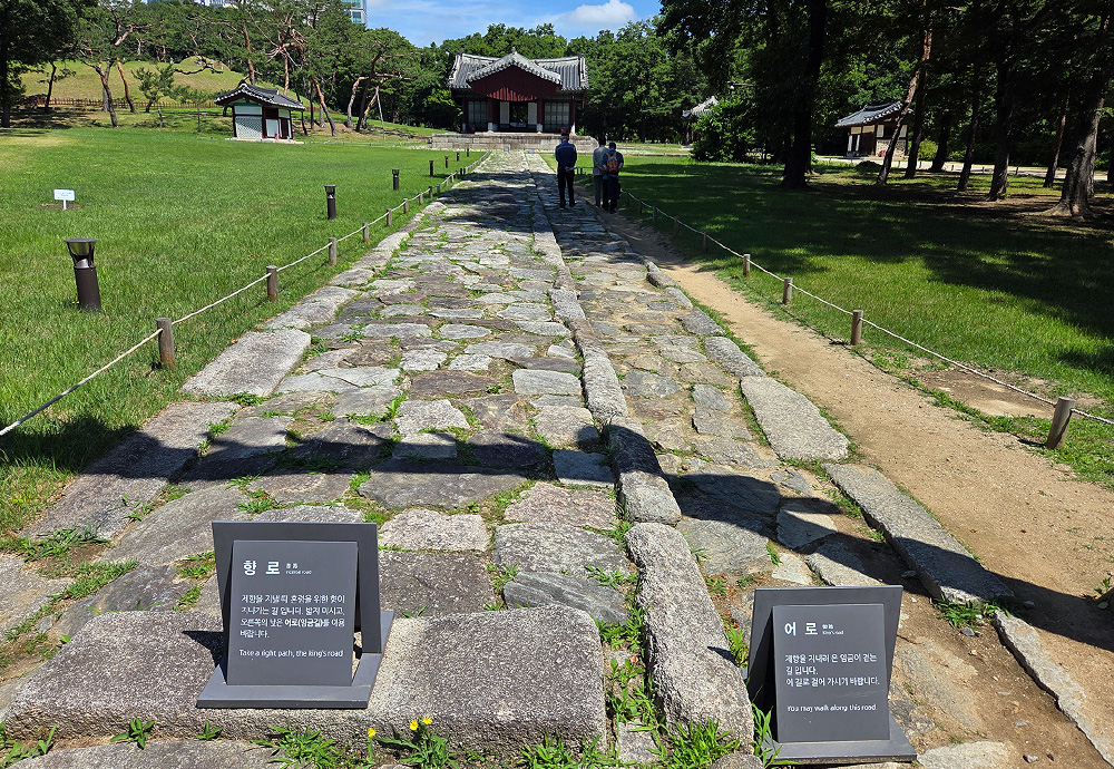 선정릉 입구로 들어서면 왼쪽(서쪽) 오솔길 따라 먼저 재실에 들른다. 재실은 제례를 지내기 전 제관들이 미리 도착하여 몸과 마음을 정화하고 제례를 준비하는 곳이다. 다음에는 선릉과 정릉 관리소인 역사 문화관에서 조선 왕릉의 공간 구성과 분포도, 세계유산 선릉과 정릉의 안내, 선릉과 정현왕후의 선릉 설명, 중종의 정릉 설명 등 자세한 안내와 정보를 얻는다. 이곳을 지나면 홍살문에서 정자각까지 박석이 깔린 길이 보인다. 왼쪽에 조금 높은 길이 향로(香路)이고, 제향 시에 재실에서 출발한 향과 축문을 들고 다니는 길이다. 오른쪽에 조금 낮은 길이 제향을 드리기 위해 왕이 다니는 어로(御路)이다. 정자각에서 왼쪽(서쪽)으로 보이는 왕릉이 성종 무덤이고, 오른쪽(동쪽)이 정현왕후 무덤이다.