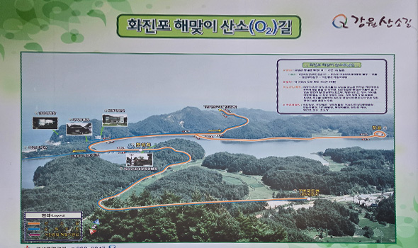 화진포 해맞이 산소길은 화진포 입구 7번 국도변에서 거진 등대 해맞이 공원까지 약 10km 연장되어 있다. 이 길 주변으로 화진포 해변과 호수, 이승만 대통령과 이기붕 별장, 김일성 별장, 생태박물관과 해양박물관, 거진 항구와 해변으로 연결된다.